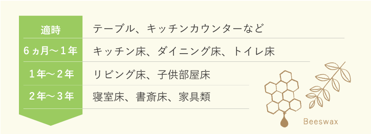 シミや汚れが気になってきたときは、ワックスの塗り直しも合わせて行うお手入れをしてくださいね。