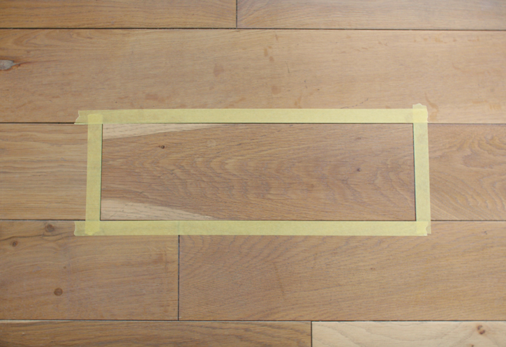 キズや汚れのあるフローリングの一枚だけを、マスキングテープで囲います。