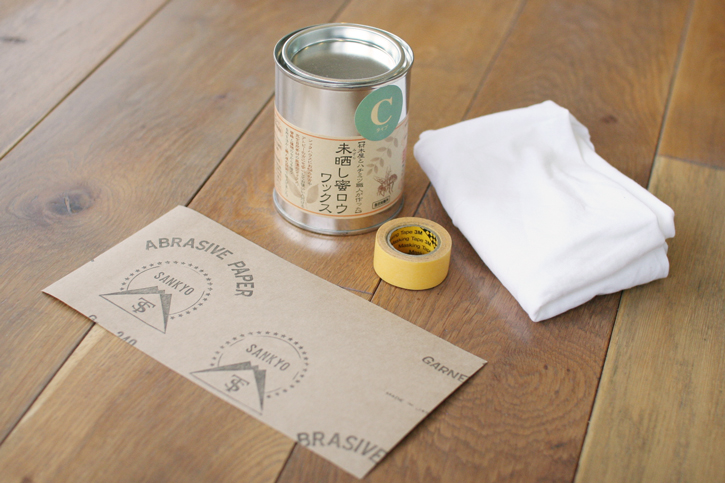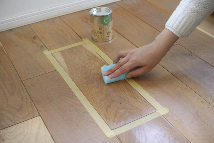蜜蝋ワックスをタオル(スポンジ)にまんべんなくのばしてから塗るときれいに仕上がります。