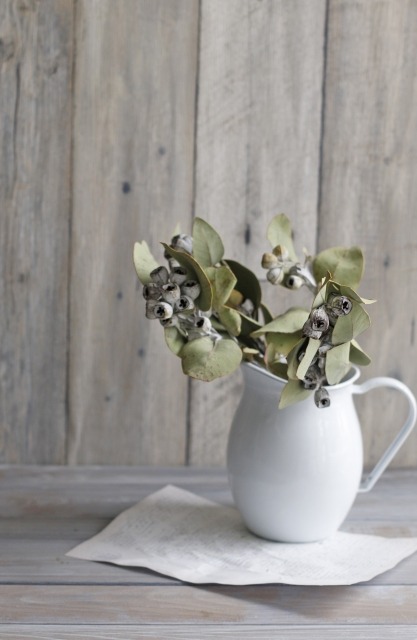 冬の季節に似合うユーカリを一つご紹介しますね。こちらは、テトラゴナナッツという名前でシルバー色の小さな実が成ったユーカリです。粉雪をまとったようなホワイトベースのカラーが冬の落ち着いた穏やかさを感じさせてくれます。しっかりとボリューム感があるので一本だけでも様になりますよ。ぜひお花屋さんで探してみてくださいね。
