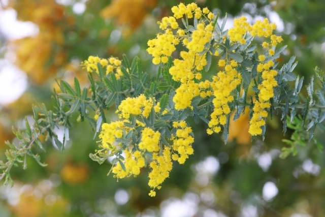 丸い小さなお花が愛らしいミモザは、アナベル同様乾燥しやすくドライフラワーに向いています。ドライにしても色が変わりにくいという特徴があるので、見たままの可憐さを永く楽しむことが出来ますよ。茎の長さもあるので、花瓶に添えたり、リースとしても楽しめる万能なお花です。